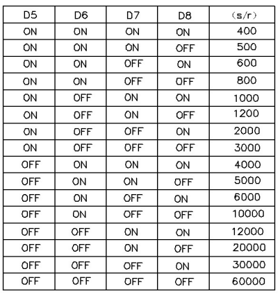 | 2 | PU- | DP9= OFF, PU為步進脈沖信號 | 下降沿有效,每當脈沖由高變低時電機走一步,要求:低電平0-0.5V,高電平4-27V,脈沖寬度>2.5μS | |