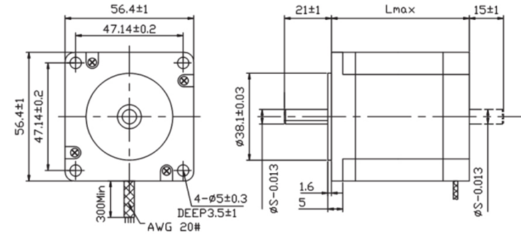 57mm三相步進電機外形尺寸圖: