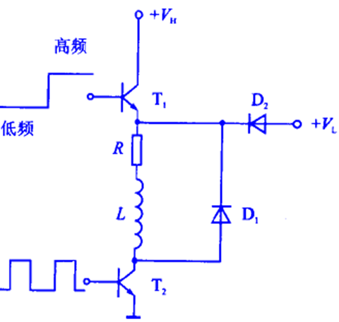 開始時T1T2同時導通, VH供電,i迅速上升VH很快關(guān)斷,VL繼續(xù)供電。