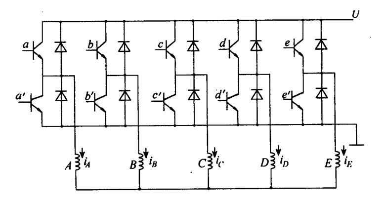 使用H橋驅(qū)動,每相繞組必須用一個H橋。當電機的相數(shù)較多時,所用的開關(guān)管較多,成本較高。為此,可采用多相橋式驅(qū)動電路,使開關(guān)管的數(shù)目減少一半。
